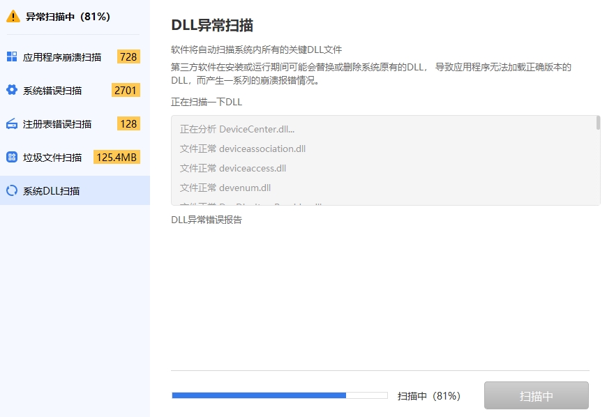 无需手动寻找、下载并放置 DLL 文件到特定目录。用户只需点击“一键扫描并修复”,系统即会自动完成下载、注册及配置生效全过程。