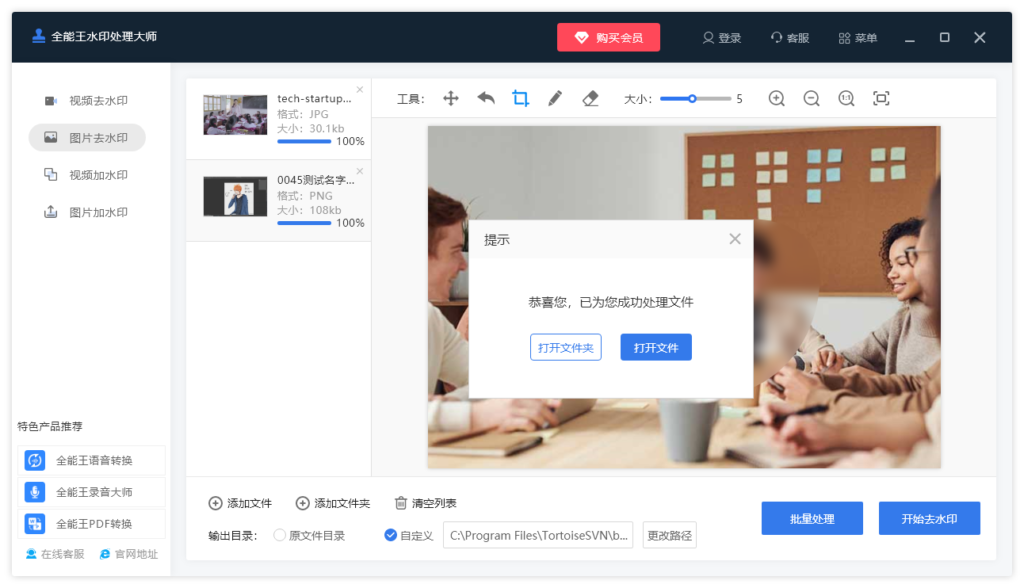 全能王去水印软件是一款专注于素材净化与修复的高性能工具。它不仅能精准移除图片和视频中的 LOGO、日期及杂物,更采用了 AI 背景重构算法,确保修复区域与原始画面完美融合,实现无痕擦除。